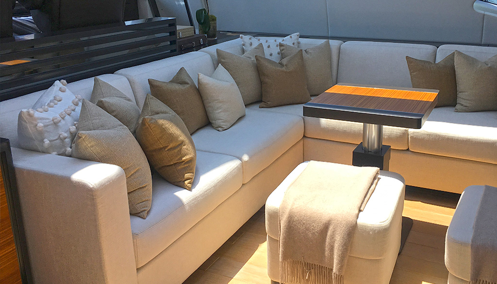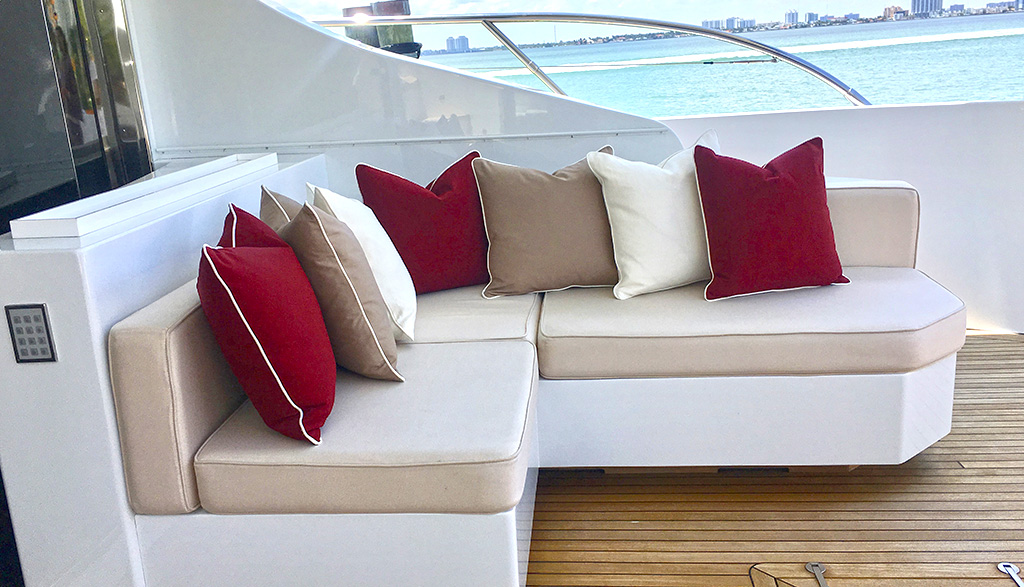Our work as professionals in the marine industry is based on detailing each area complying with it’s specific and particular needs, using water resistant fabrics and waterproof inserts.